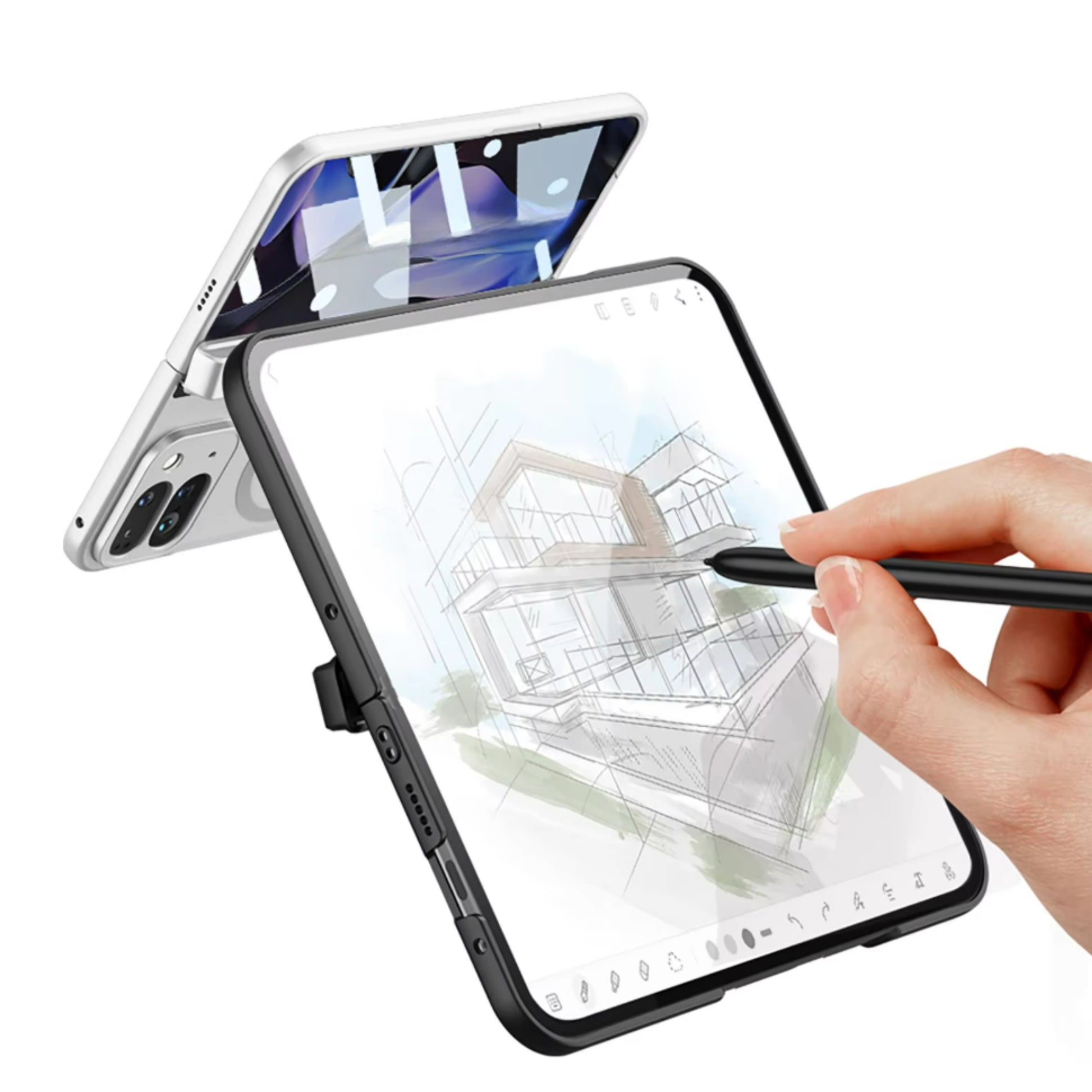 Keep your S-Pen secure and your Google Pixel 9 Pro XL Fold protected with this all-in-one case. Featuring a dedicated S-Pen holder, a built-in kickstand for hands-free use, and a strong magnetic hinge for reliable protection and smooth folding. Everything you need, in one stylish case.