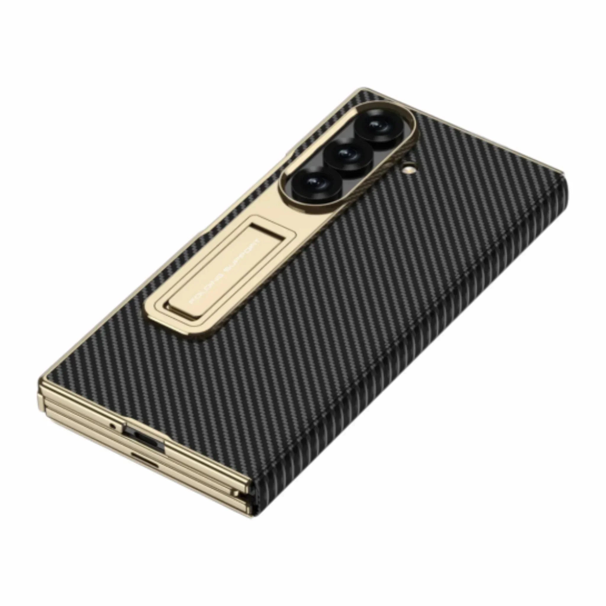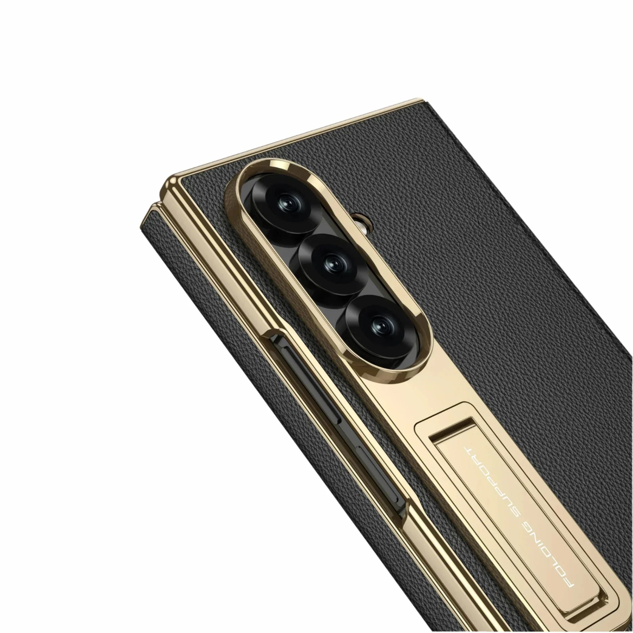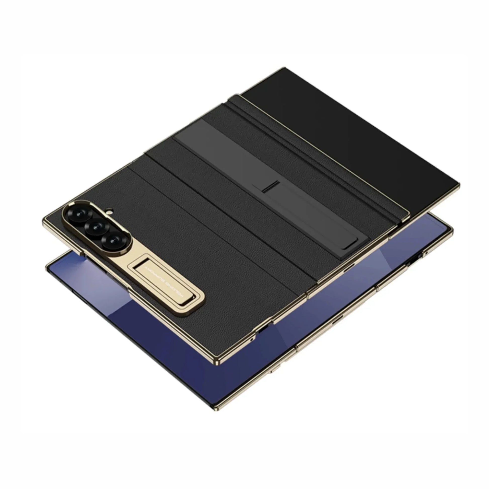 Elevate your Galaxy Z TriFold with FoldifyCase’s premium protection. This case features a luxurious textured finish, reinforced gold alloy frame, and precise camera cutout for full lens coverage. The integrated kickstand offers hands-free convenience, while the slim, form-fitting design preserves the TriFold’s sleek profile. FoldifyCase delivers advanced durability and style for your foldable device.