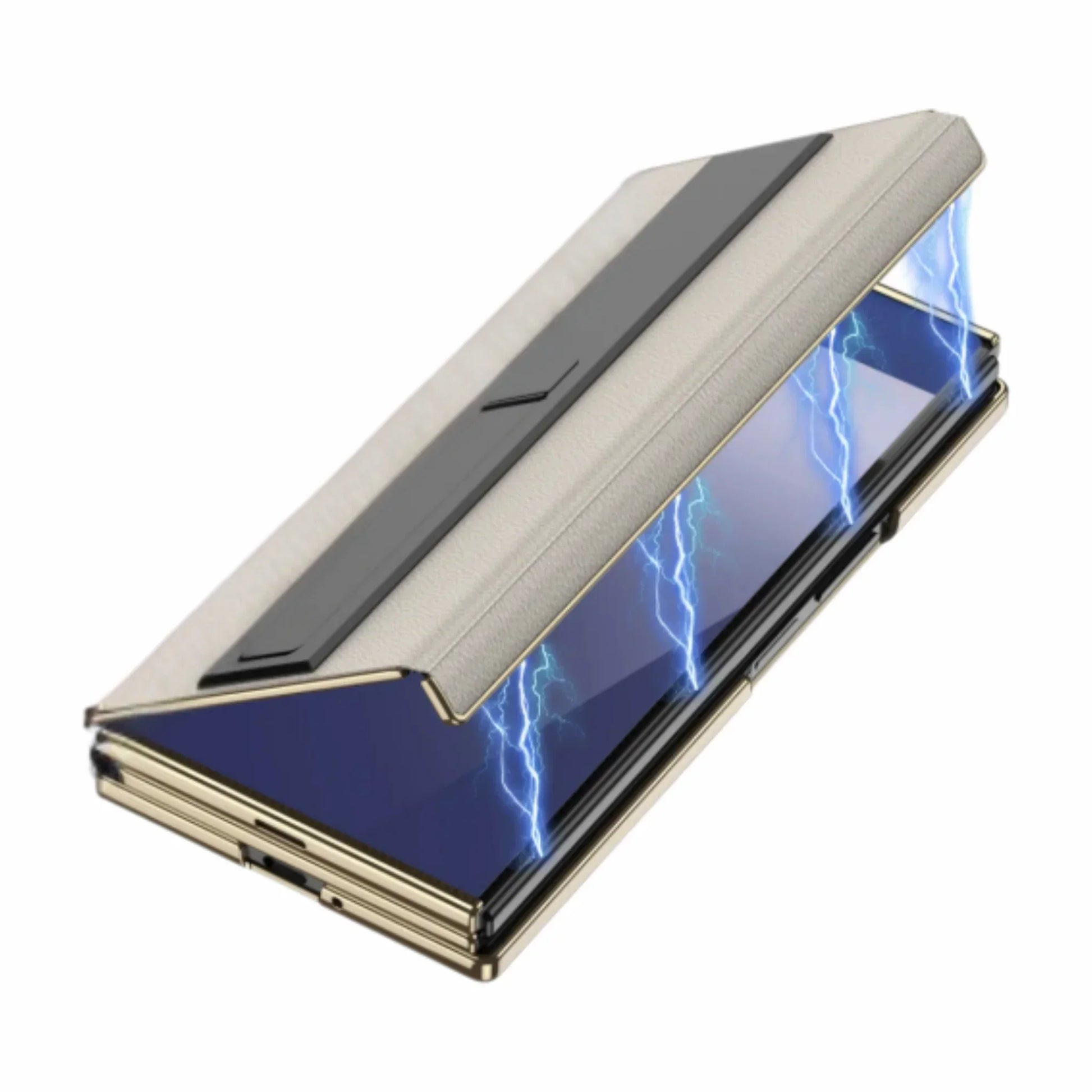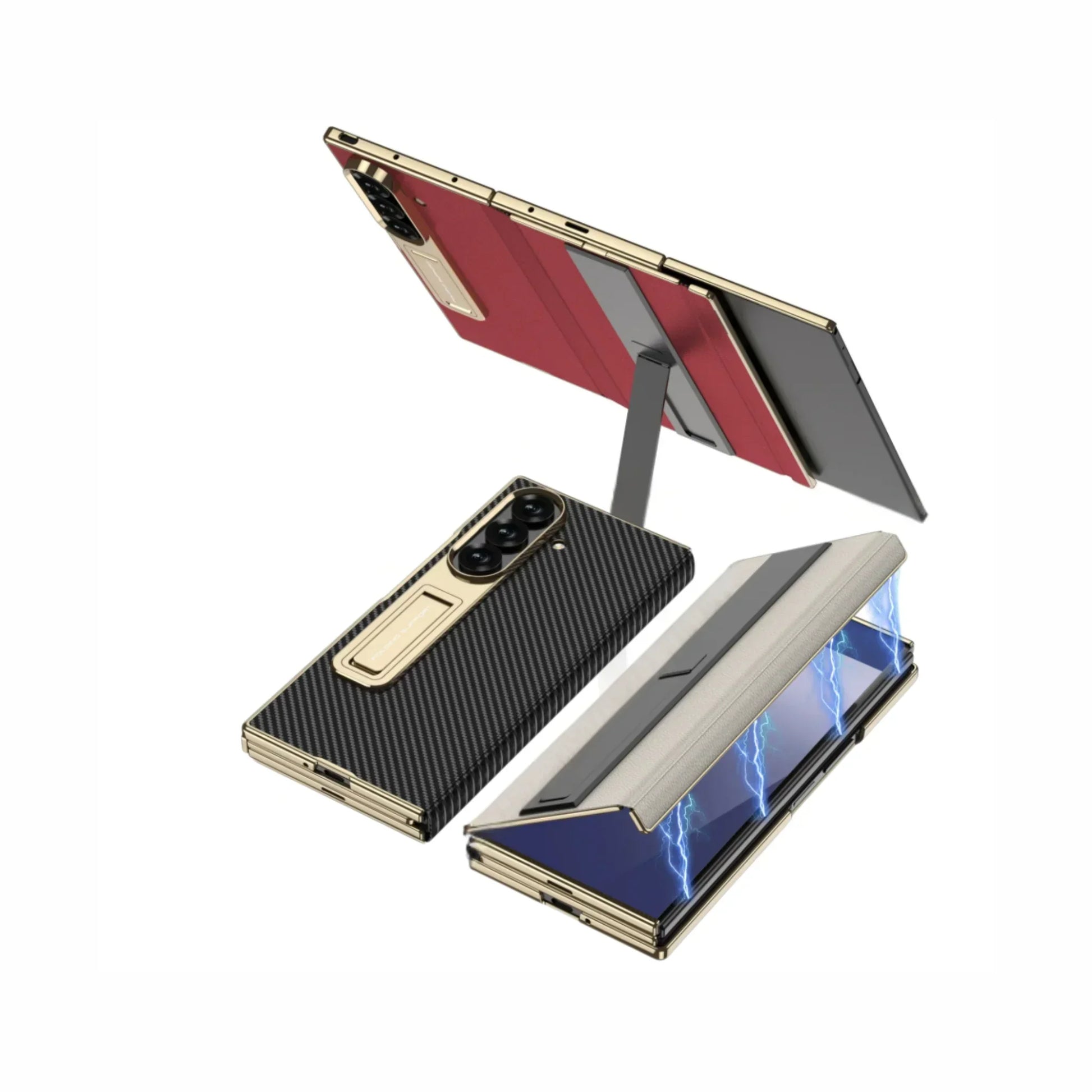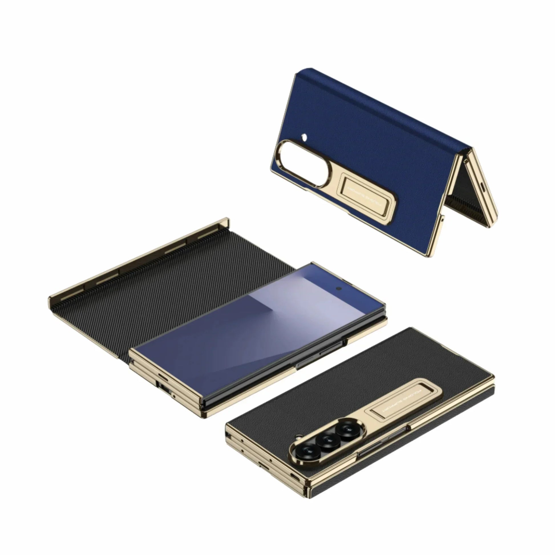 Elevate your Galaxy Z TriFold with FoldifyCase’s premium protection. This case features a luxurious textured finish, reinforced gold alloy frame, and precise camera cutout for full lens coverage. The integrated kickstand offers hands-free convenience, while the slim, form-fitting design preserves the TriFold’s sleek profile. FoldifyCase delivers advanced durability and style for your foldable device.